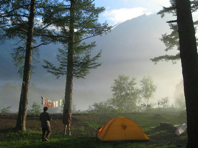 小梨平キャンプ場の朝 (この黄色いテントはうちのじゃありません)