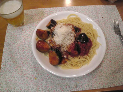 今日の夕食は娘が作ったパスタ、ぺペロンチーノ。