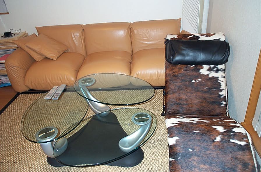 右側の長椅子はコルビュジェ、奥のソファはアルフレックスのマレンコですね。