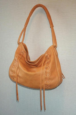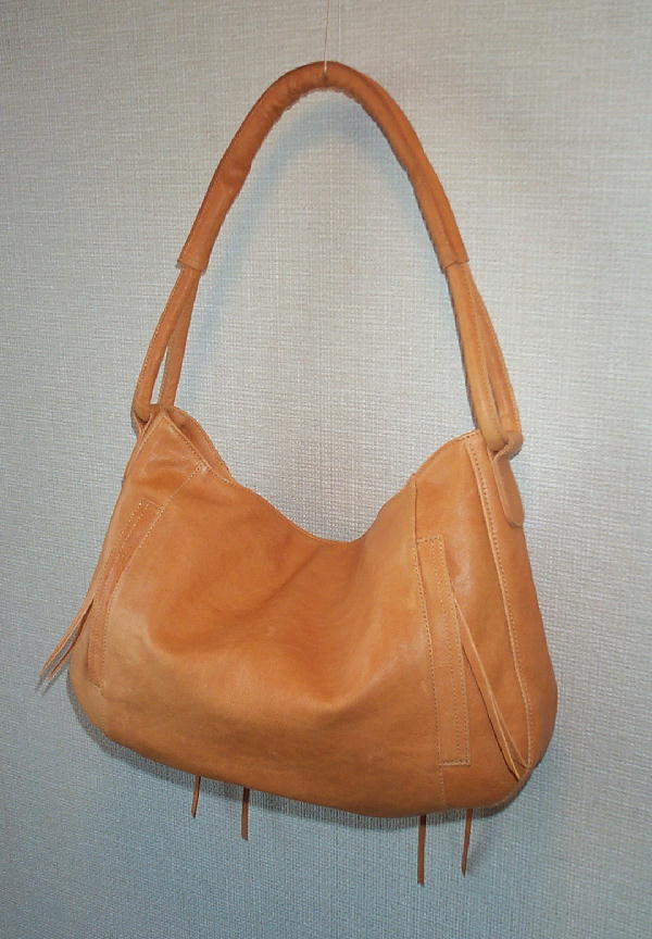 ナチュラルな色と質感の革なので、大きめの袋タイプにしてみました。