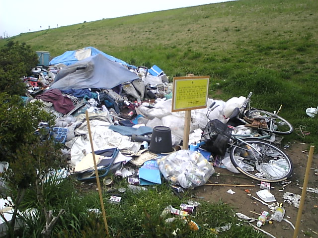 なるべく目立たないようにしていればまだ良いんですが、この写真のやつ、川側じゃなく土手の内側なもんだからすごく目立つ。