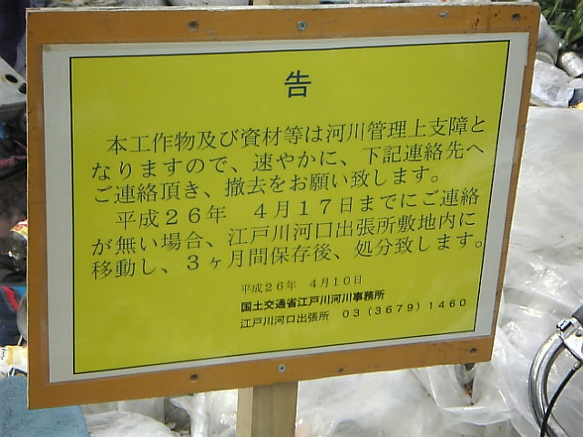 4月17日までにどかさないと強制撤去するんだって。