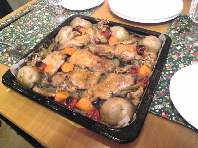 メインディッシュはカミさんの新メニュー、オーブンを使ったローストチキン。