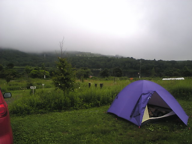 それにしても、我が家の区画は小さな山岳テントがポツンと張ってあるだけ。