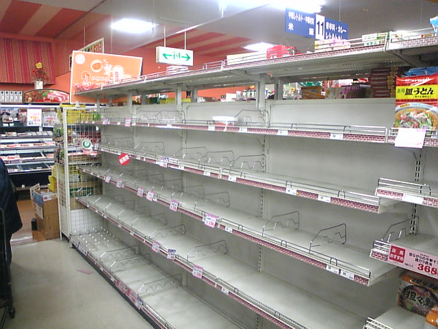 よく見たら、パンとかカップ麺とか、空っぽになってんの。