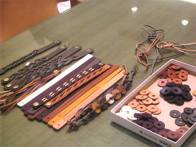 革でブレスレット作りましょうっていうの、やってきました。