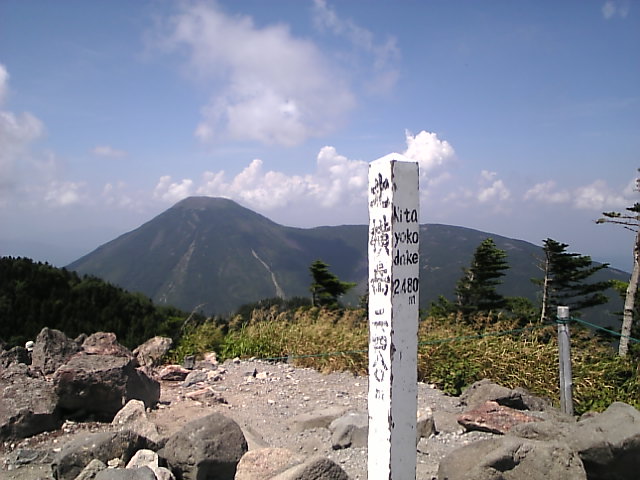 北横岳山頂。向こうに見えるのは蓼科山。